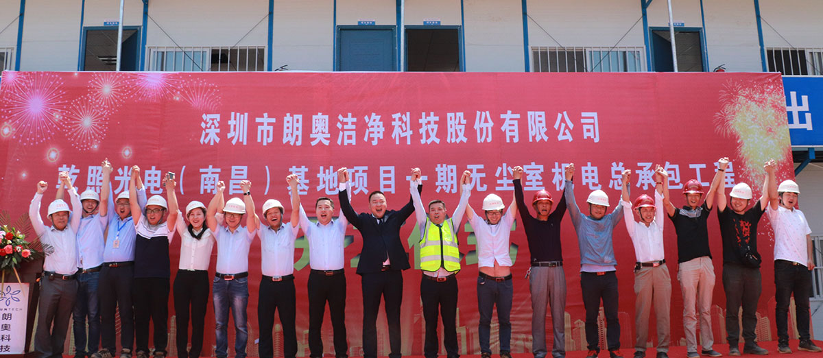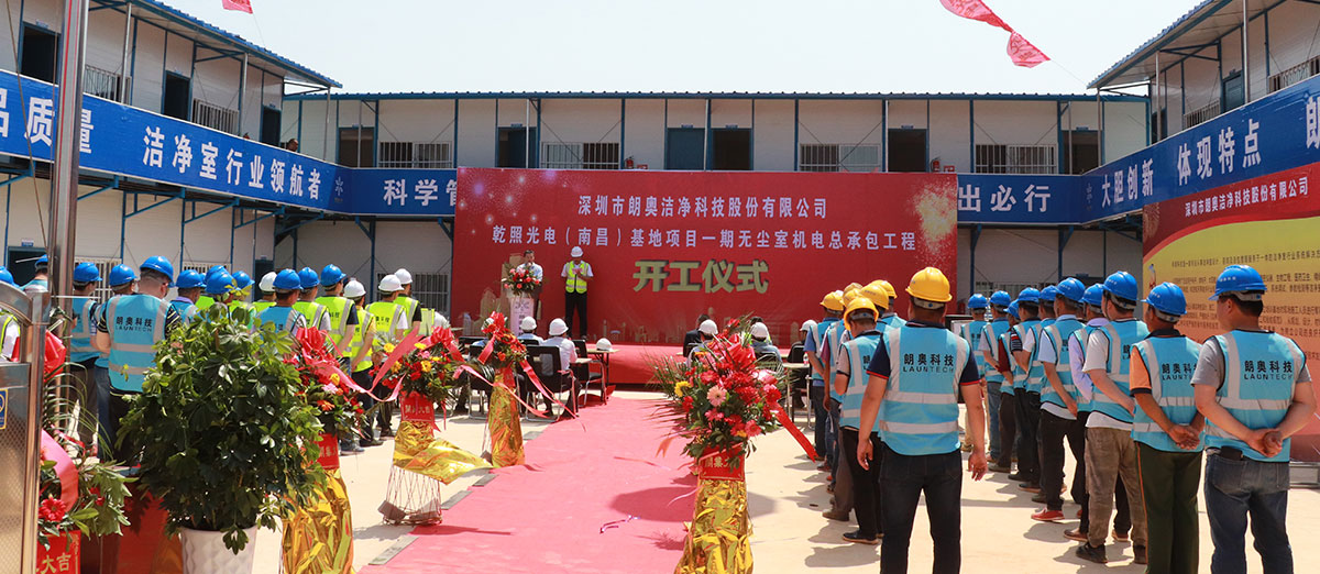 2018年5月16日上午,朗奧承建的乾照光電(南昌)基地項(xiàng)目一期無塵室機(jī)電總承包工程在南昌舉行了開工儀式,現(xiàn)場旗幟飄揚(yáng),燈籠高飛,擺滿花簇。