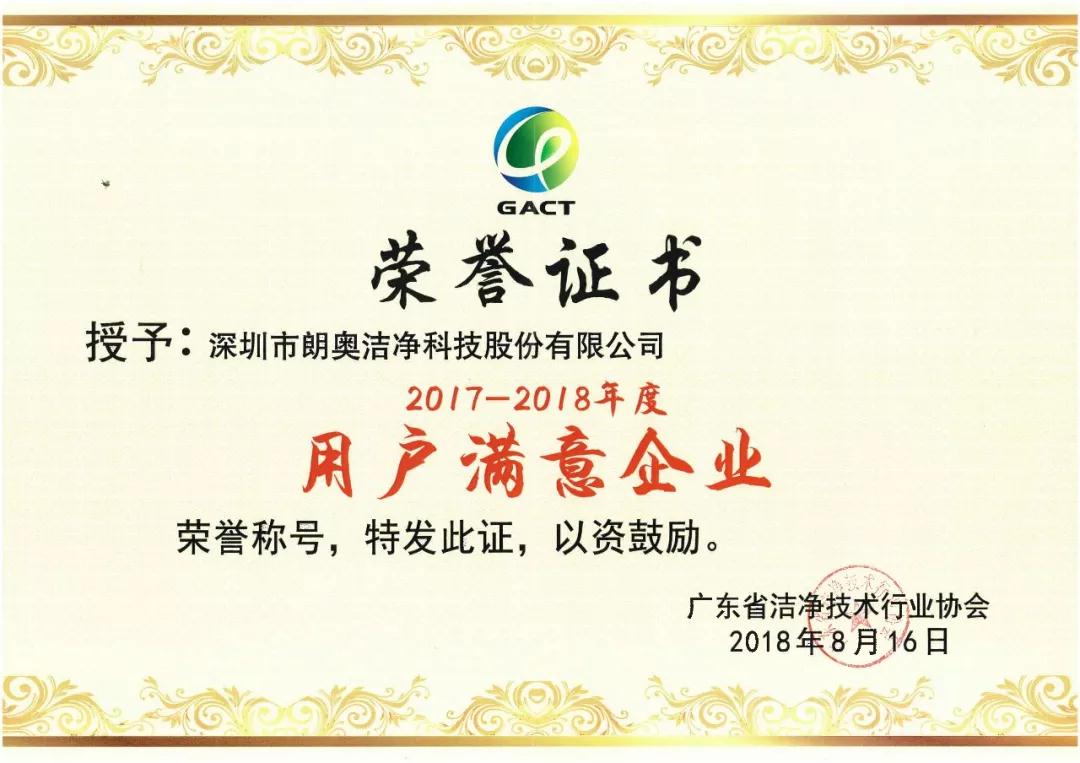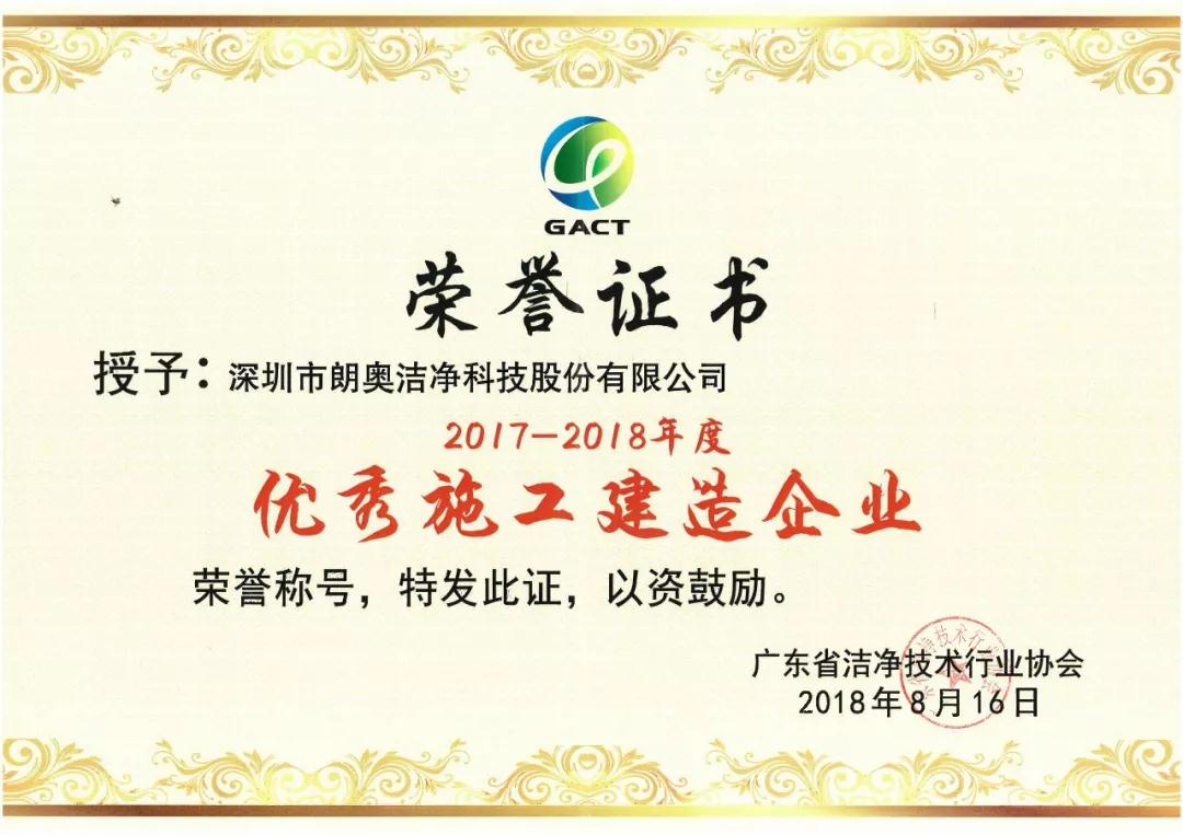 祝賀朗奧獲得用戶滿意單位證書、優(yōu)秀施工建造企業(yè)證書!