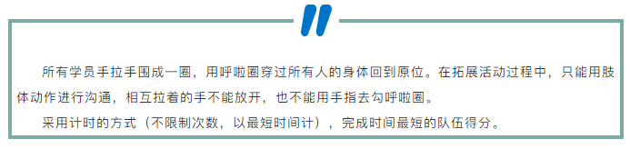 一圈到底是在沉默中“手舞足蹈”,大家用肢體語言進(jìn)行溝通,身體彎曲鉆過呼啦圈,呼啦圈在一個(gè)又一個(gè)的隊(duì)員中穿梭而過。