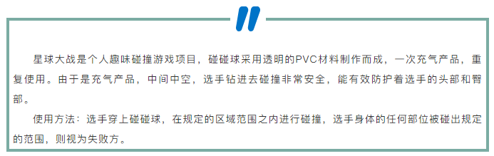 星球大戰(zhàn)能夠培養(yǎng)我們的反應(yīng)能力及身體的靈敏度;還能夠鍛煉我們面對(duì)苦難時(shí),勇于挑戰(zhàn)的精神,把身上的碰碰球喻為“困難和盔甲”,迎難而上地去戰(zhàn)斗!