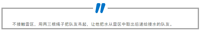 雷區(qū)取水的繩子很磨皮,我們紛紛都選擇了最輕的人上陣,為了保護(hù)自己也為了能更好的完成任務(wù)!