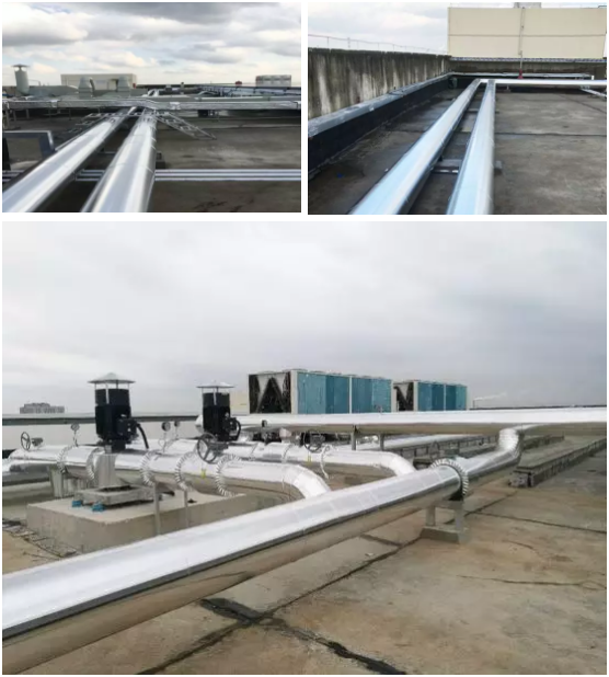 整個(gè)系統(tǒng)由屋面兩臺風(fēng)冷模塊機(jī)組進(jìn)行制冷制熱,主機(jī)是風(fēng)冷螺桿機(jī)(節(jié)能空調(diào),能效比高),末端采用風(fēng)機(jī)盤管/吊頂組合新風(fēng)柜冷凍水管道是從整棟樓層出發(fā)考慮的,每一個(gè)樓層都有預(yù)制接駁點(diǎn),為后續(xù)各個(gè)樓層的裝飾裝修打下基礎(chǔ),屋面水泵基礎(chǔ)我們采用的是減震平臺基礎(chǔ),目的是減少震動(dòng)和聲噪。
