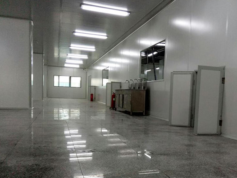 結(jié)構(gòu):墻板使用防火隔音效果一流的巖棉彩鋼板,外走道按消防要求隔墻到頂,生產(chǎn)車間由2.8米的內(nèi)車間+1.5米高的技術(shù)夾層構(gòu)成。吊頂由甲級(jí)防火且可上人的中空玻鎂彩鋼板制作而成。外走道由美觀性極強(qiáng)的礦棉板吊頂制作,為了達(dá)到整體立體感效果,所有的門均使用訂做的鋼質(zhì)門,再加上可觀性的鋼化玻璃觀察窗,觀察窗由抽真空雙層鋼化玻璃觀察窗制作,參觀性極強(qiáng)。